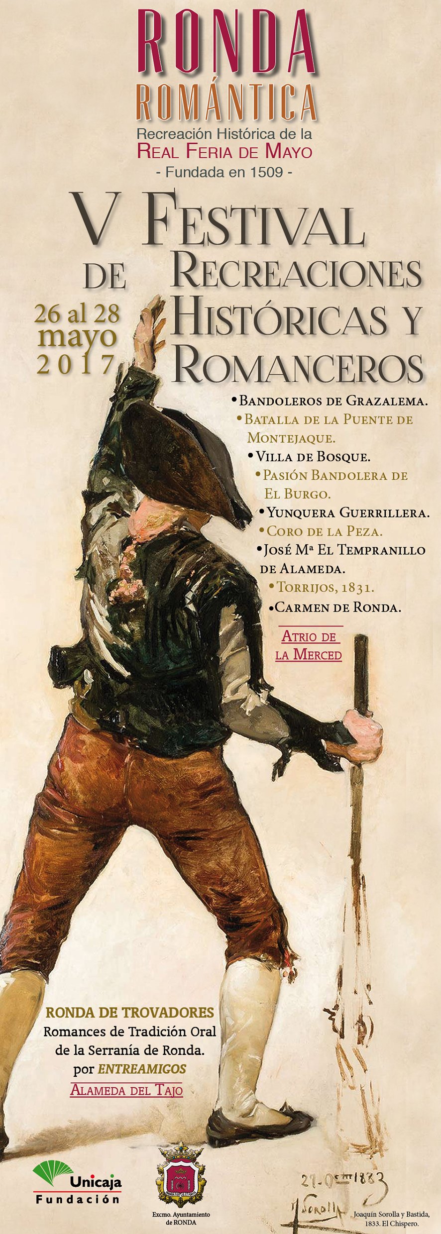 Como acto previo de Ronda Romántica-2013 se organizó una extraordinaria exposición de este gran pintor malagueño, cuyo origen familiar está ligado a Ronda, y que ha sabido representar como nadie las escenas costumbristas de la época dorada del romanticismo rondeño, con imágenes de bandoleros y viajeros, imprimiendo un estilo personal que recuerda a los grandes maestros españoles del siglo XIX, pero con la fuerza de su tiempo. Rosas es sin duda un gran exponente de la pintura andaluza de la segunda mitad del siglo XX.
